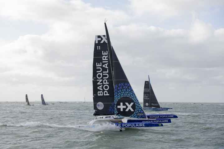 The excellent weather conditions and strong wind prevailing at the start of the race allowed the maxi-trimaran to reveal all its potential, to fly over the waves and quickly reach high speeds in front of a crowd massed on the cliffs of Normandy’s Alabaster Coast.