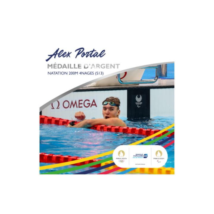 Alex Portal, soutenu par la Banque Populaire Val de France, a remporté la médaille d’argent du 200 m quatre nages S13 après avoir conquis vendredi sa première médaille en 400 m nage libre.