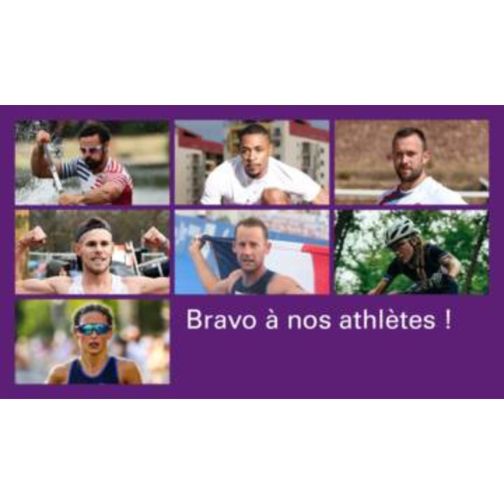 Bravo aux champions de France Maxime Beaumont en canoë-kayak (1) (Banque Populaire du Nord), Wilhem Belocian (2) (Caisse d’Epargne CEPAC), Frédéric Dagée (3) (Caisse d’Epargne Côte d’Azur), Jimmy Gressier (4) (Caisse d’Epargne Haut de France) et Jules Ribstein en athlétisme (5) (Caisse d’Epargne Grand Est Europe), ainsi qu’aux championnes du monde, Loana Lecomte en VTT (6) (Banque Populaire Auvergne Rhône Alpes), et Léonie Périault en triathlon (7) (Banque Populaire Val de France).